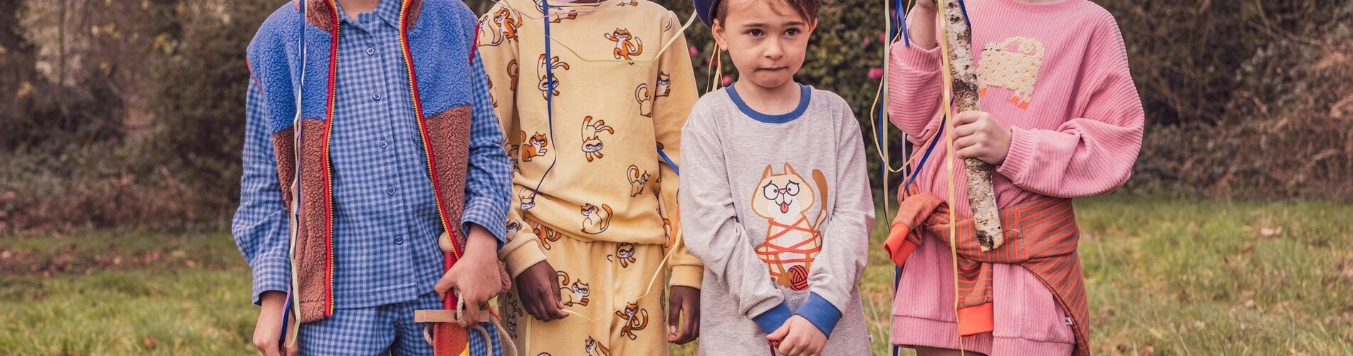 Ook als je slaapt wil je goed ogen. Kwalitatieve slaapkledij in hippe of rustige kleuren. De knotsgekke dierenprints van Woody nemen groot en klein mee naar dromenland.